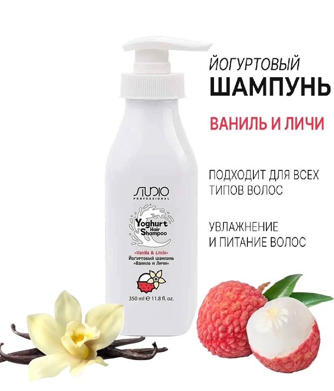 Kapous Studio Professional Yoghurt Шампунь йогуртовый, Ваниль и Личи, 350 мл